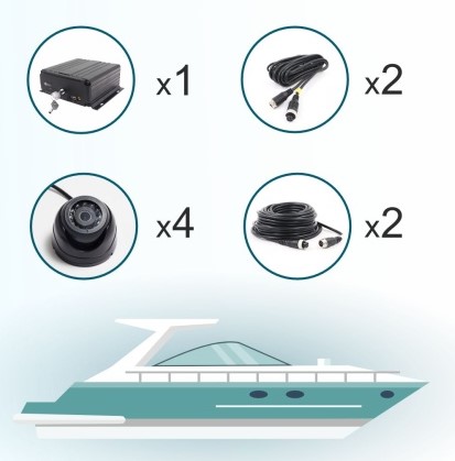 Комплект видеонаблюдения для судна - регистратор, 4 камеры