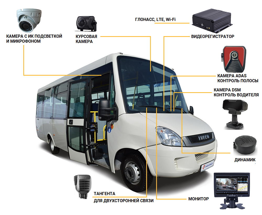 Комплект видеонаблюдения для автобуса малого класса ПП РФ № 969 с функцией "АнтиДТП"