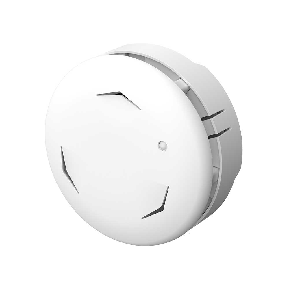 Беспроводной датчик дыма Rubetek ИП 212-02/Wh подает сигнал на контрольную панель по радиоканалу с частотой 868 МГц.